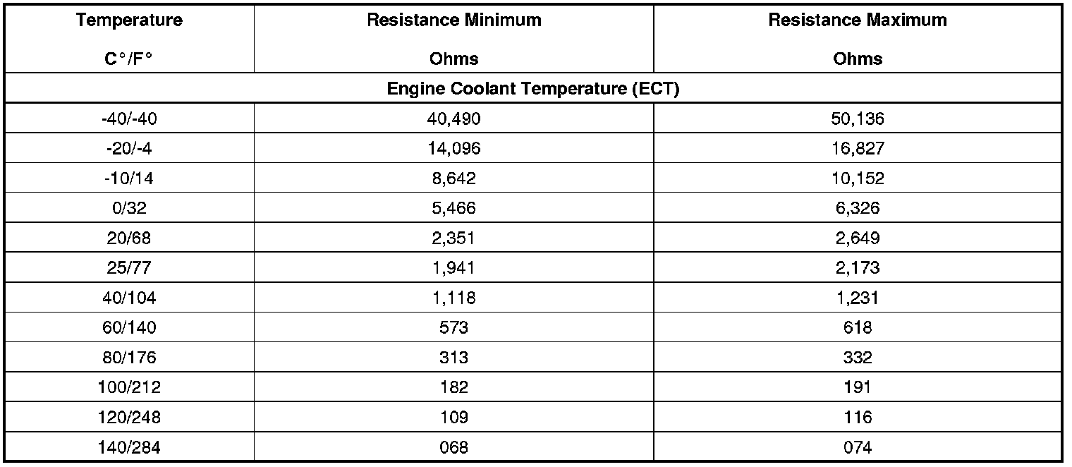 Temperature Versus Resistance - Engine Coolant Temperature Sensor
