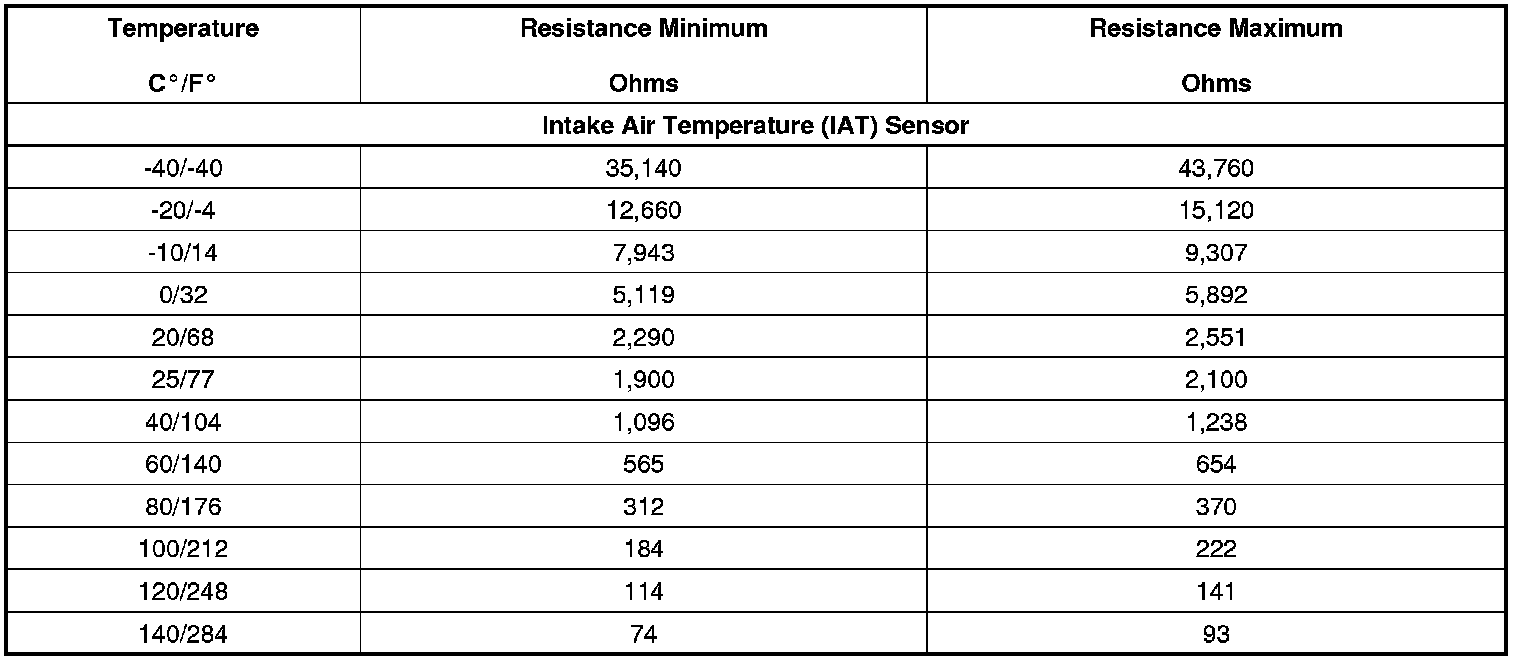 Temperature Versus Resistance - Intake Air Temperature Sensor
