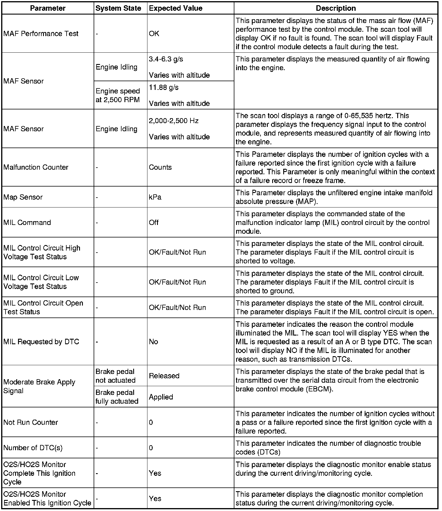 The Engine Control Module Scan Tool Data List contains all engine-related parameters that are available on the scan tool. The list is arranged in alphabetical order. A given parameter may appear in any one of the data lists, and in some cases may appear more than once, or in more than one data list in order to group certain related parameters together.