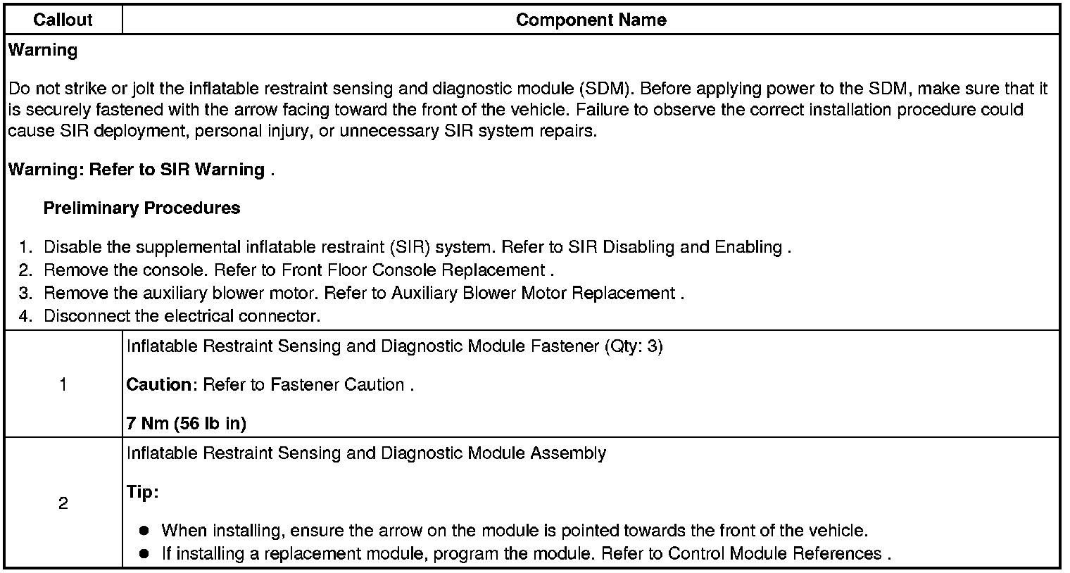 Inflatable Restraint Sensing and Diagnostic Module Replacement