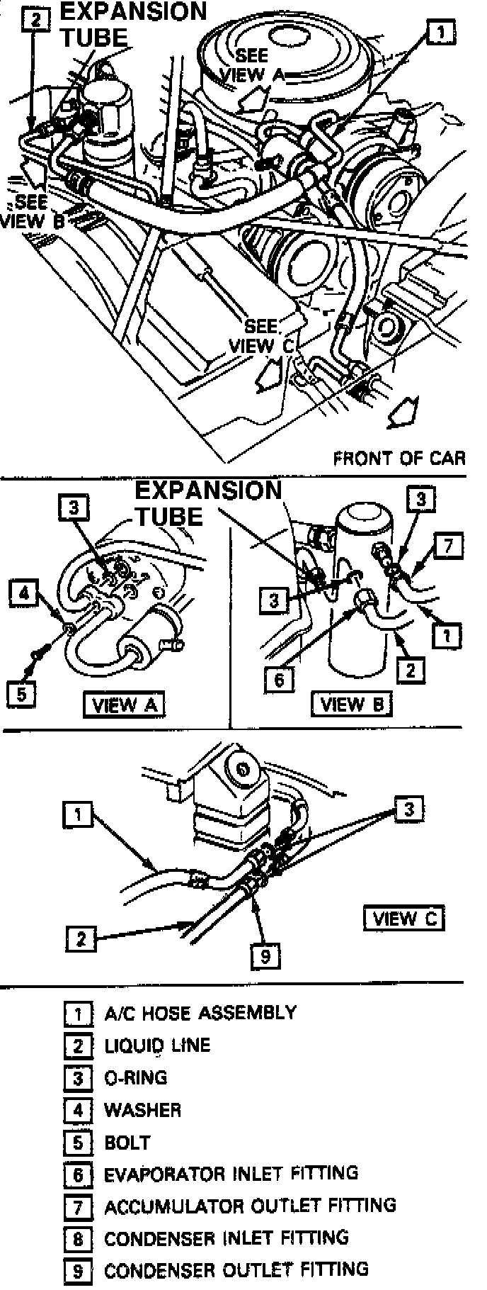 The Expansion Tube is located in the liquid line, at the evaporator inlet fitting.