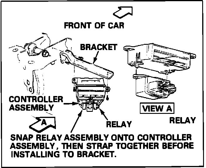 4. Remove two screws securing controller and relay to bracket. Bracket is attached to brake pedal bracket.