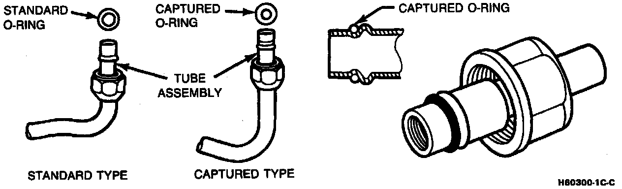 When replacing O-rings on an air conditioning component or joint connection, the fitting design should be carefully identified to ensure installation of the correct air conditioning service replacement O-ring. Some joint connections and components will implement a "captured" 0-ring design fitting that uses a groove to retain the O-ring, while others do not have a groove and use a "non-captured" or "standard" O-ring.