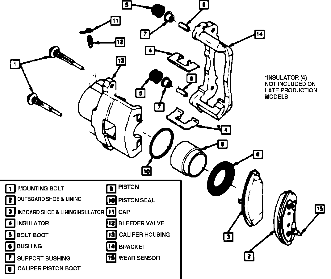 1. If first design shoe and lining assemblies are being installed, mount insulators (4), Fig. 1, on caliper bracket.