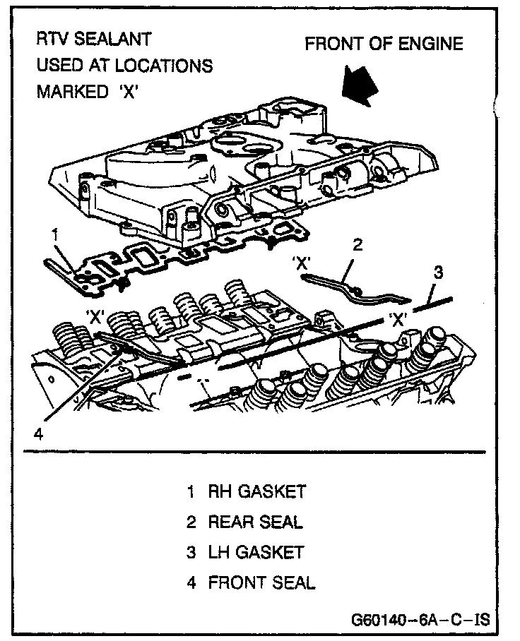 2. RTV 1052366 to four corners where end seals will meet side gaskets