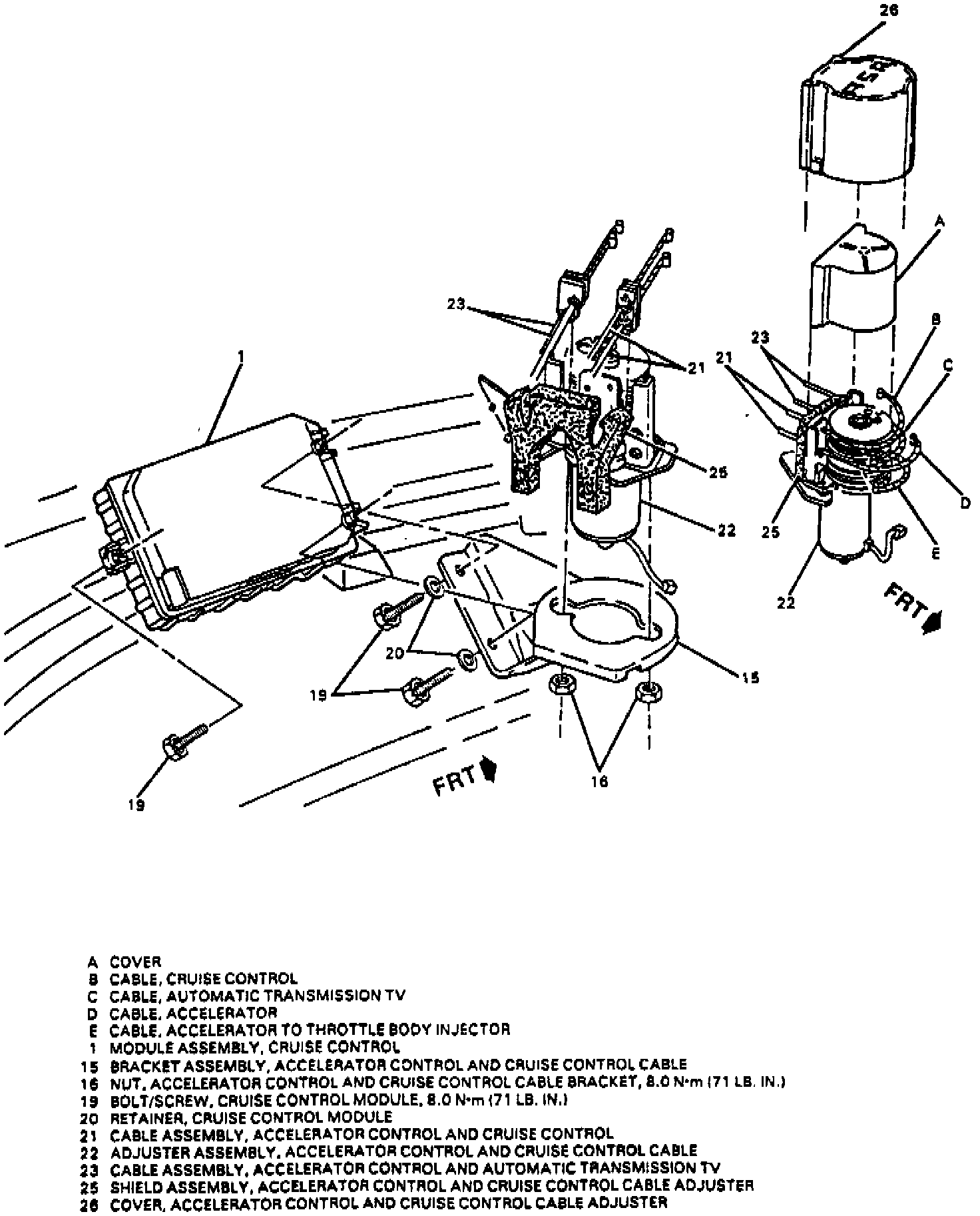 2. Remove accelerator control, cruise control cable and automatic transmission TV.