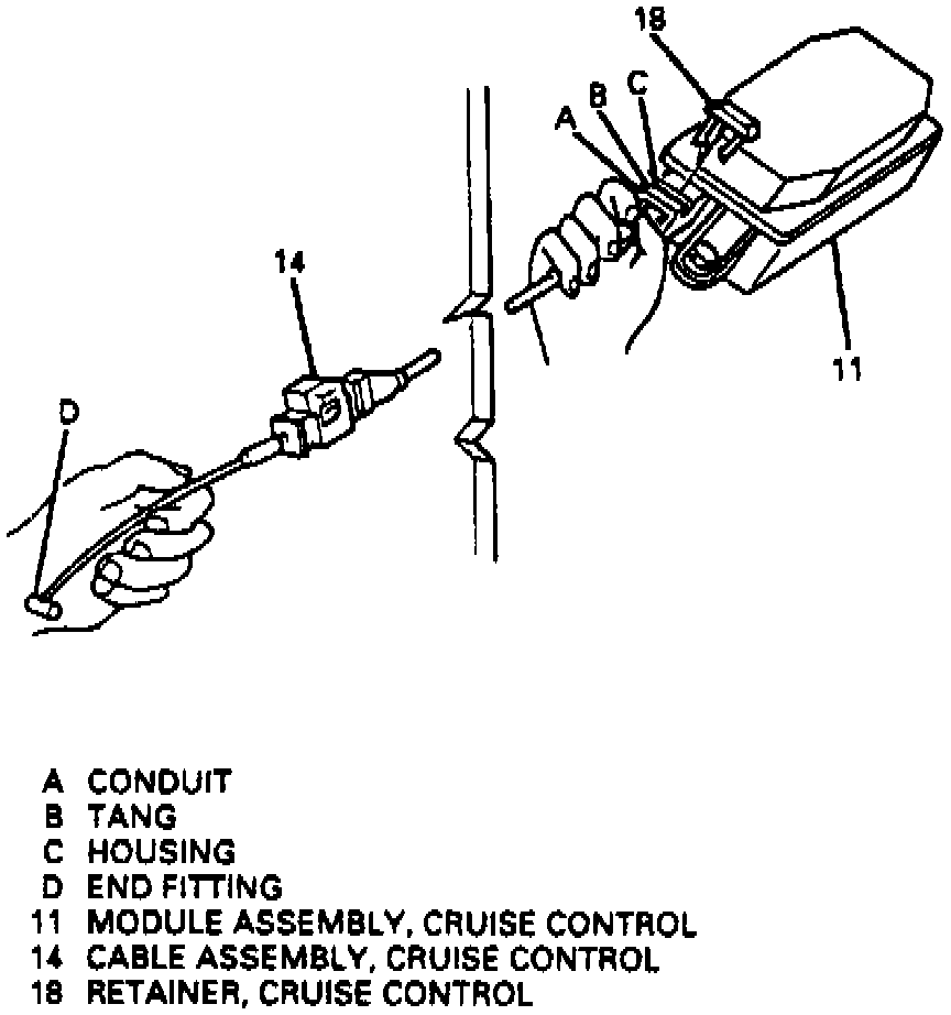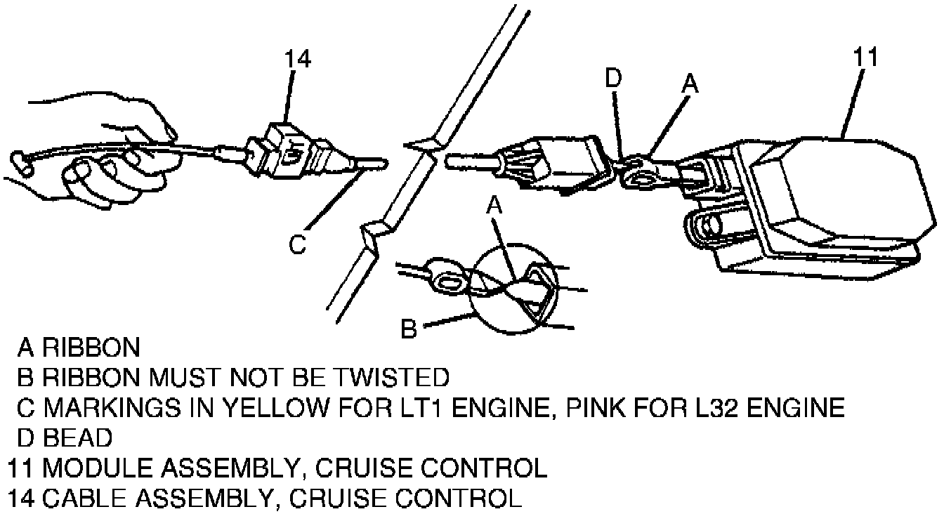 The cable is connected between the cruise control module and throttle body lever.