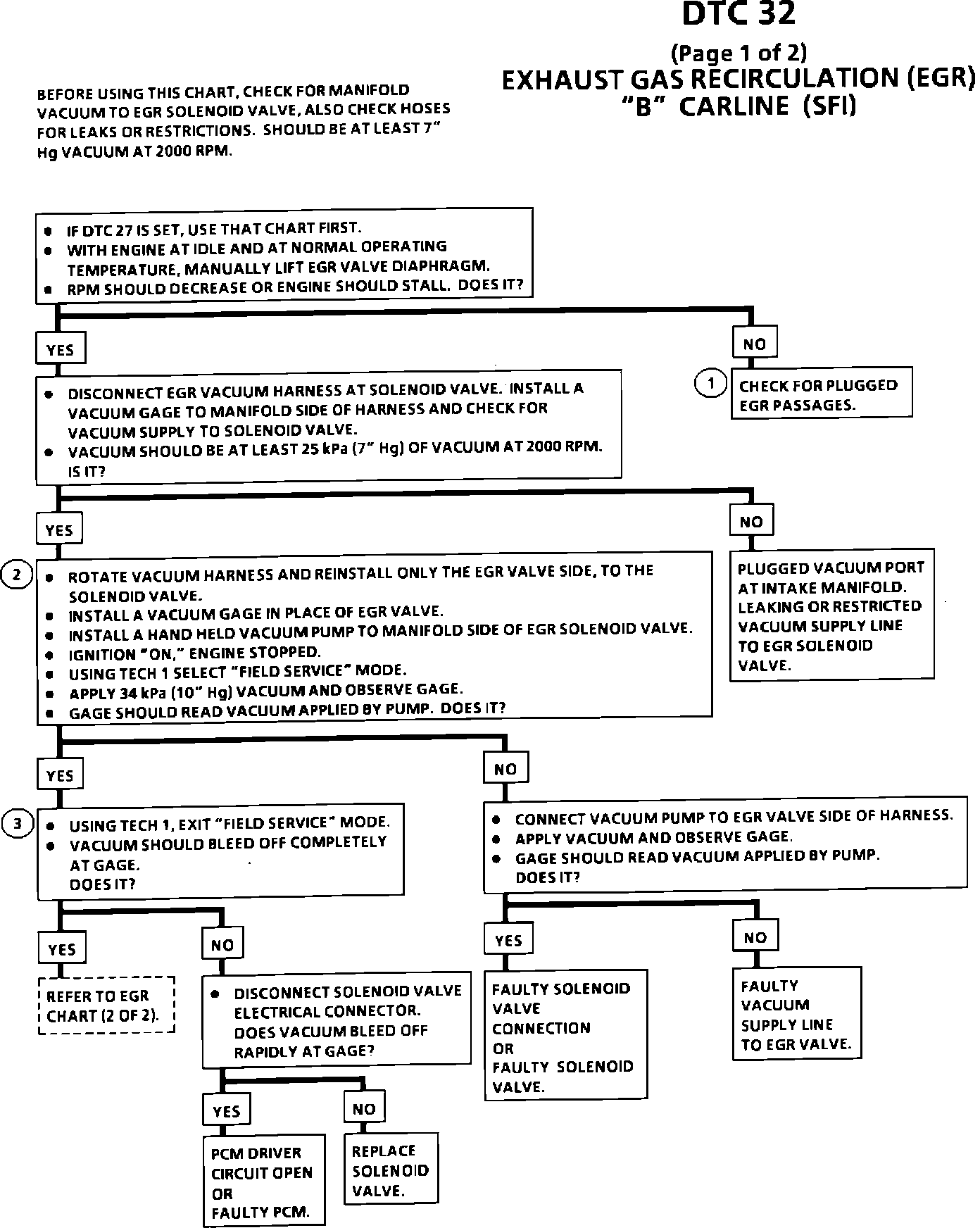 2. The Tech 1 actuates the EGR vacuum control signal solenoid valve when in the "Field Service" mode. The system should hold vacuum which should be indicated at the vacuum pump gage and at the vacuum gage installed in place of the EGR valve.