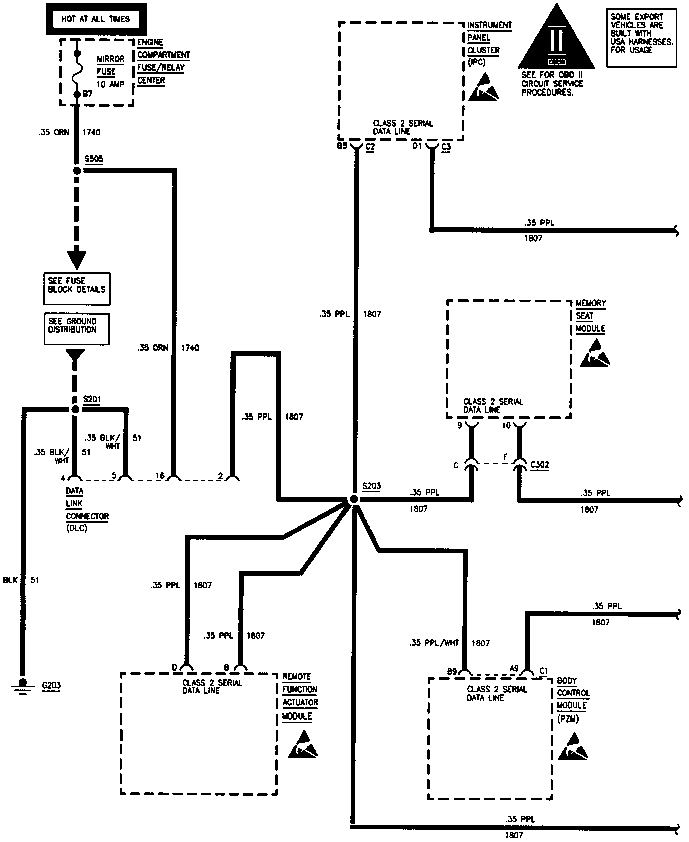 Data Link Connector (DLC): Class 2 Data Line (Export):