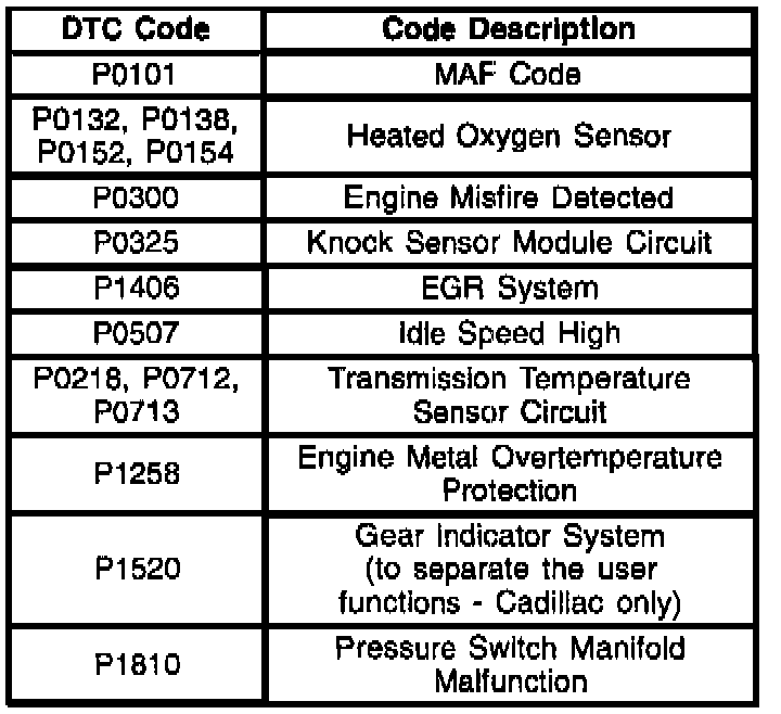 This DTC code is more likely to set by frequent vehicle hot starts in high ambient temperatures. Verify that there are no induction system leaks. If no induction system leaks are found, proceed to the service manual DTC diagnostic chart. If at step 7 of the DTC diagnostic chart, the answer is "yes", then update the PCM with the applicable calibration listed in the Parts Information section of this bulletin. Verify the repair using the Tech II device.