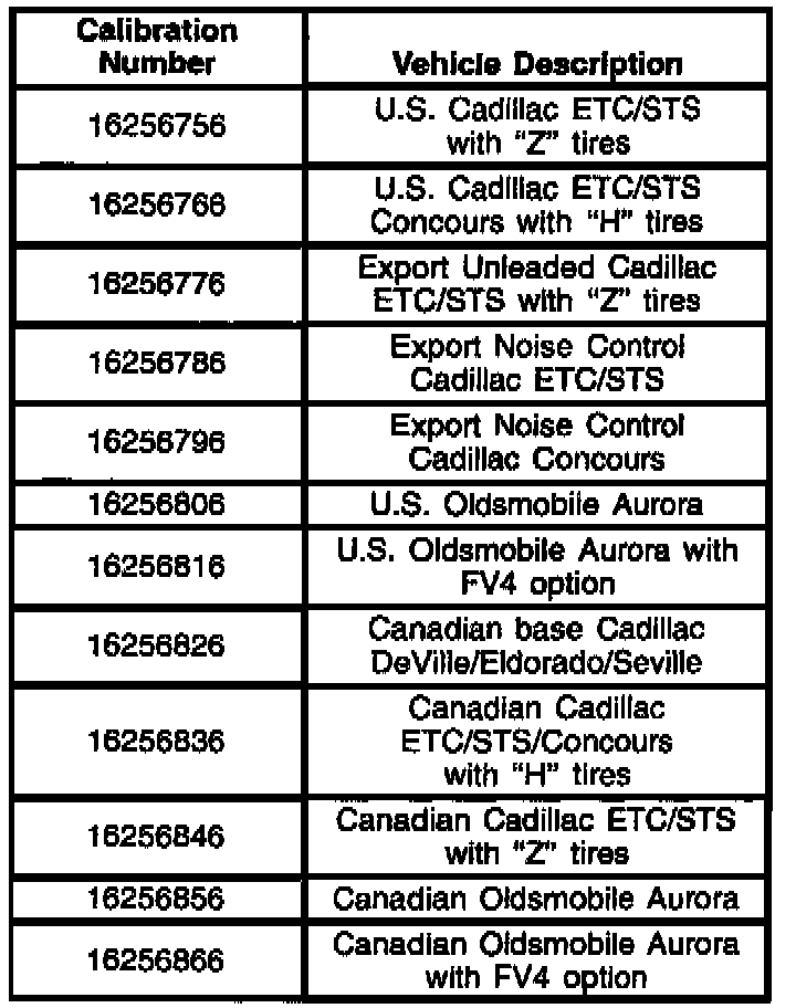 For all 1996 Cadillac DeVille Concours, DeVille, Eldorado, Seville, and Oldsmobile Aurora models: