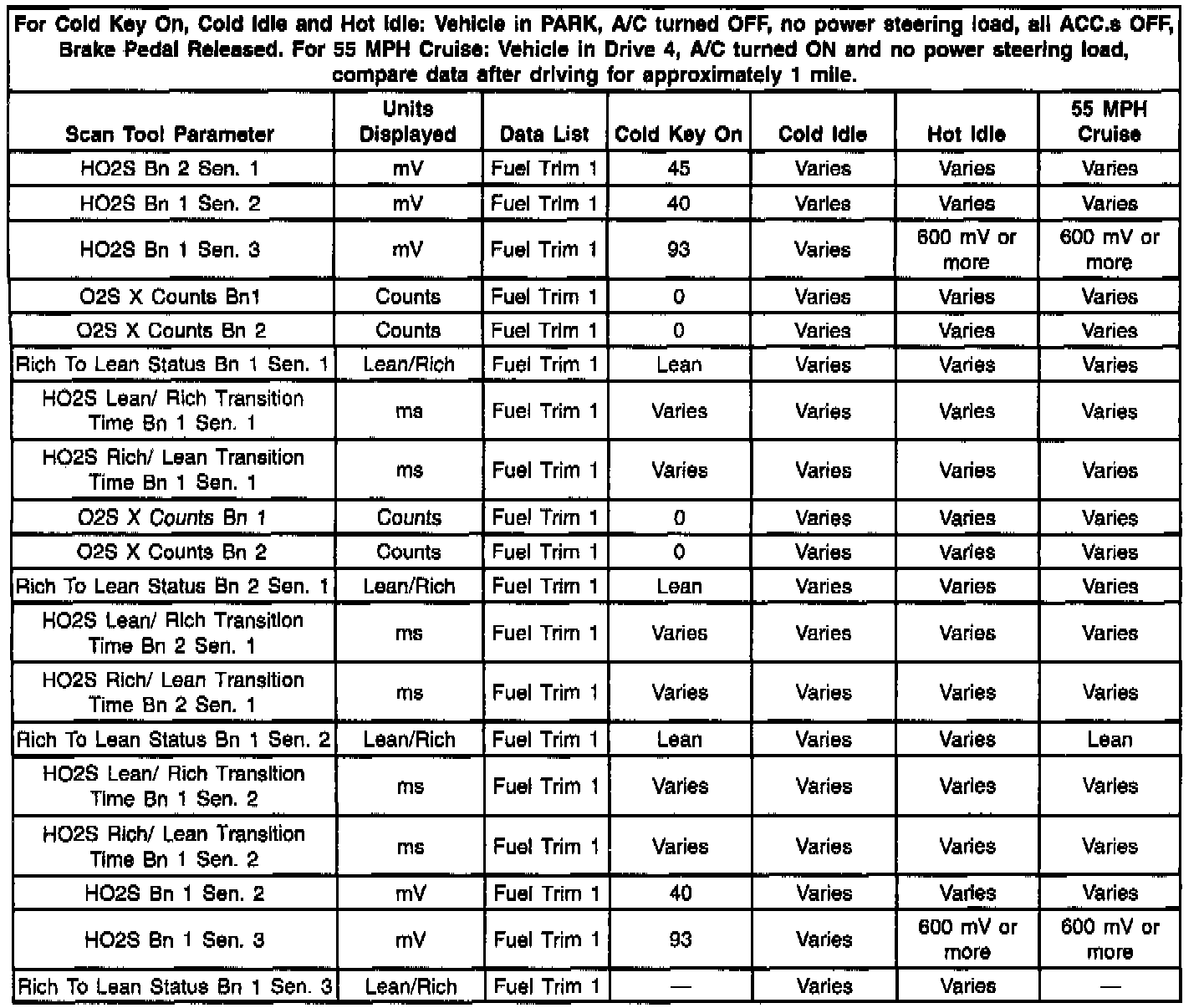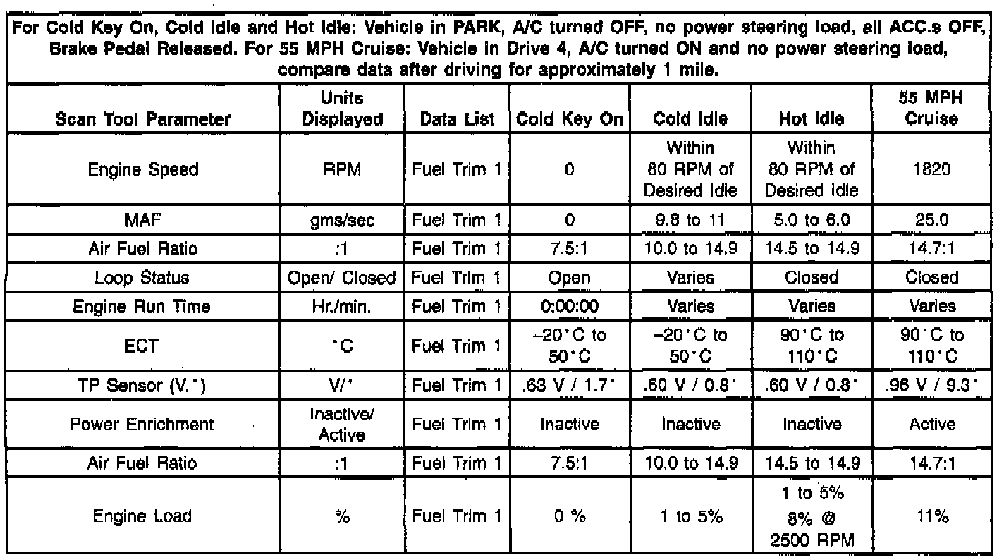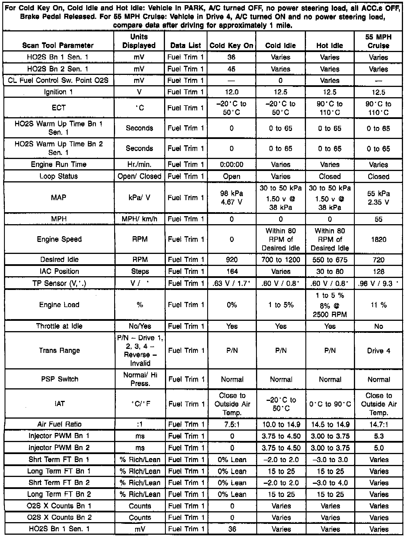 Fuel Trim 1 Data Values