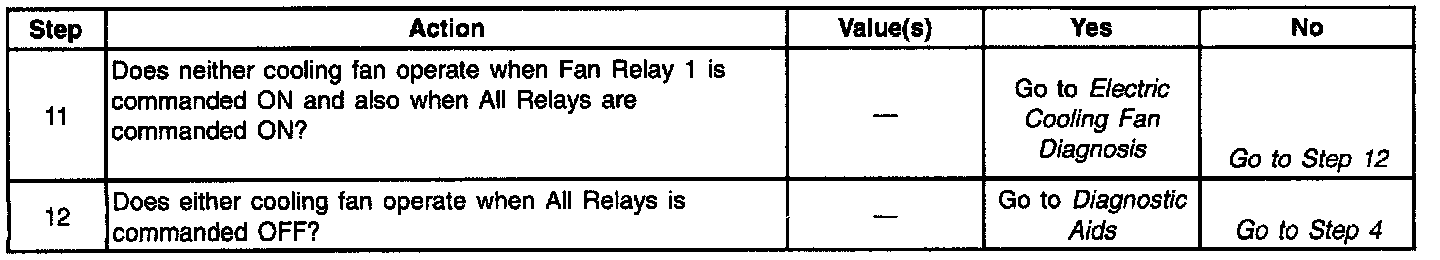 ^ If the cooling fans operate when commanded OFF and DTC P1550 is not set either a cooling fan relay is stuck ON or a cooling fan circuit is shorted to power.