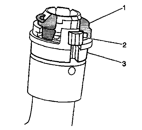 ^ Squeeze the locking tabs (2) and push the retaining sleeve (3) into the locked position.
