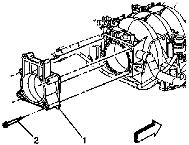 8. Install the throttle body spacer (1) and retaining bolts (2) to the intake manifold.