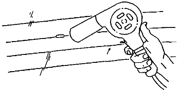 ^ Hold the heat gun nozzle 25 mm (1 in) from the repair surface.