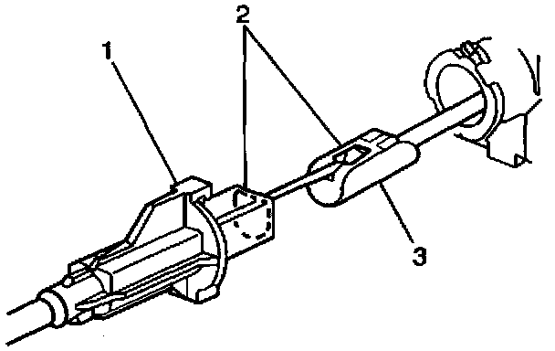 2. Remove cruise control cable (1) from module assembly connector (3).