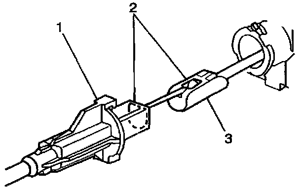 7. Install the cruise control cable to engine bracket (3) and throttle body cam (1).