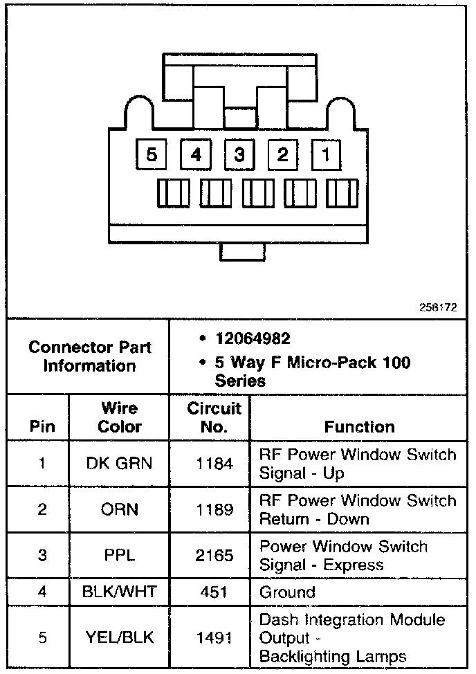RH Front Power Window Switch: