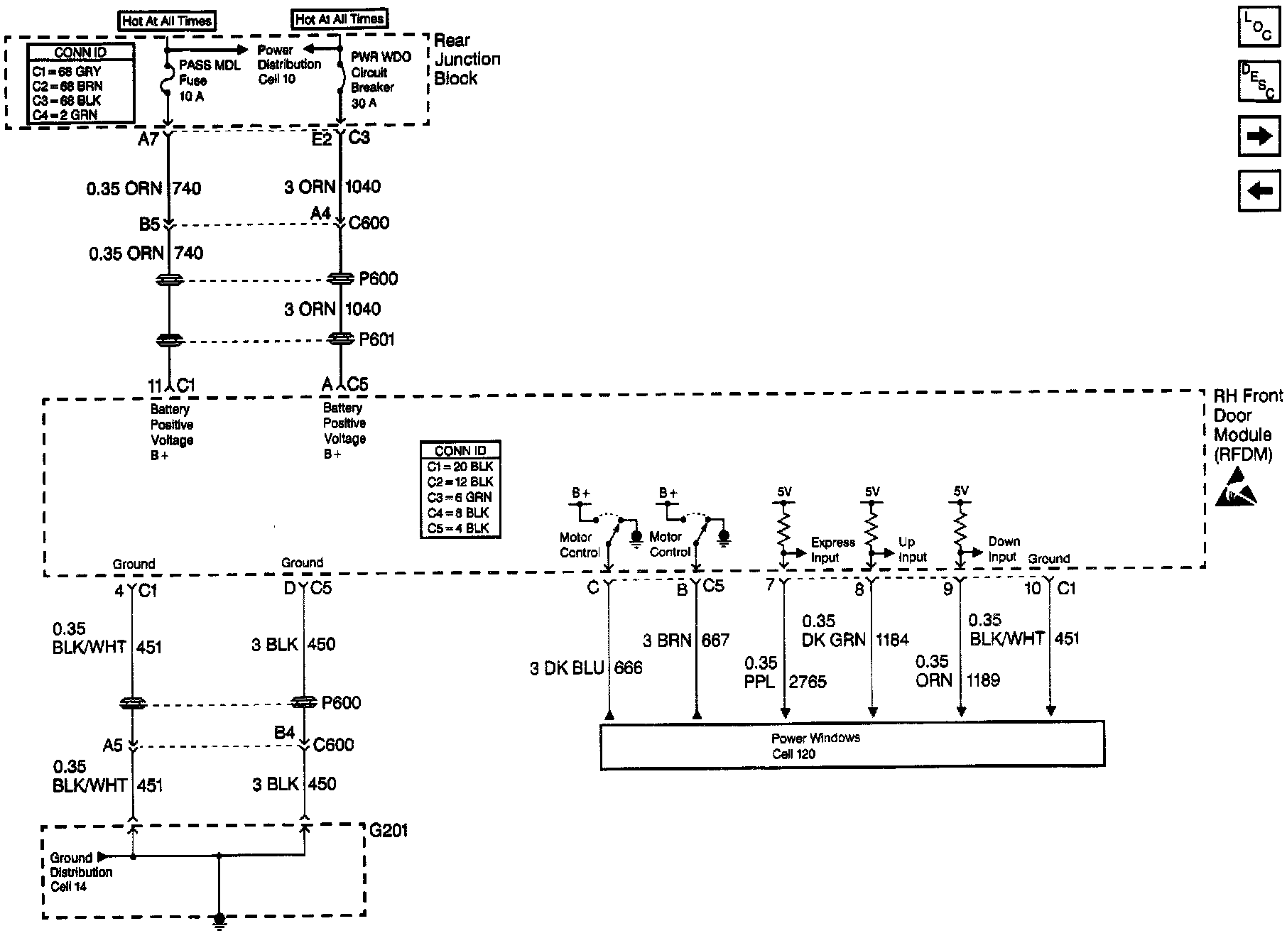 Door Control Module Schematics: RFDM Power, Ground Inputs And Outputs: