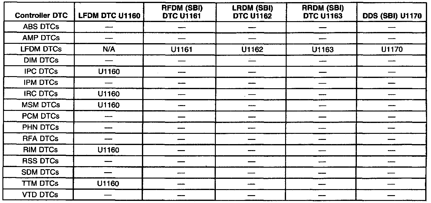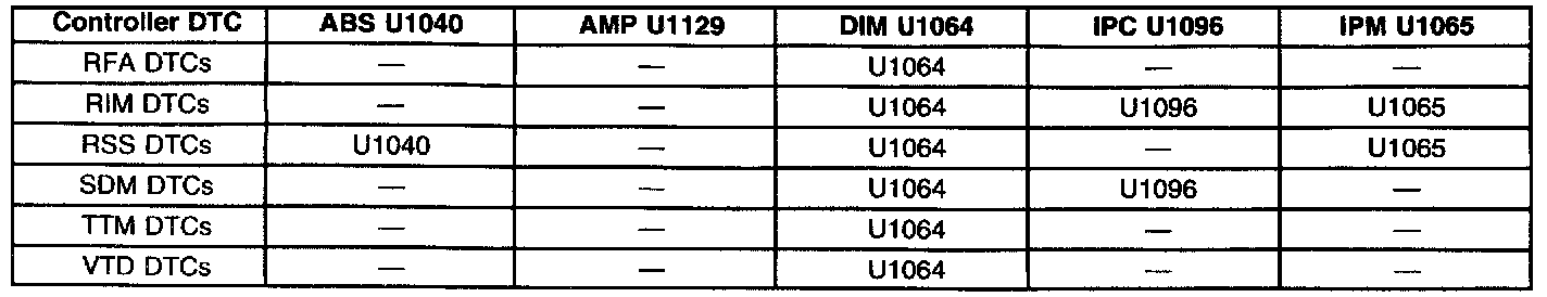 ^ The left column of each chart indicates which module observed this Loss of Class 2 Serial Data, and internally set a DTC to identify this condition.