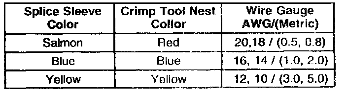 5. Select the proper splice sleeve (2) and the required crimp nest tool, refer to the Crimp and Seal Splice Table.