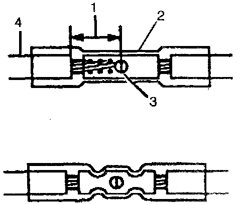 9. Insert the wires into the splice sleeve until the wire hits the barrel stop. The splice sleeve has a stop in the middle of the barrel in order to prevent the wire from passing through the splice (3).