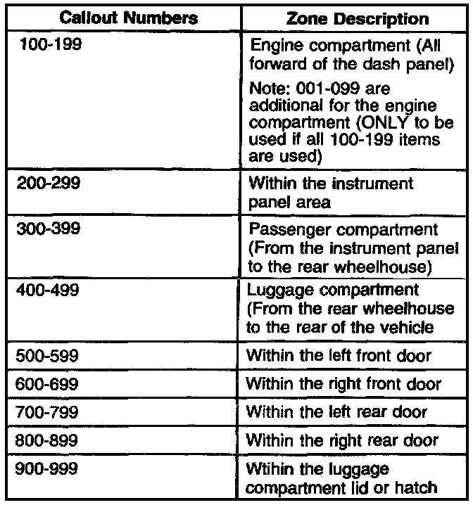 Vehicle Zoning Table: