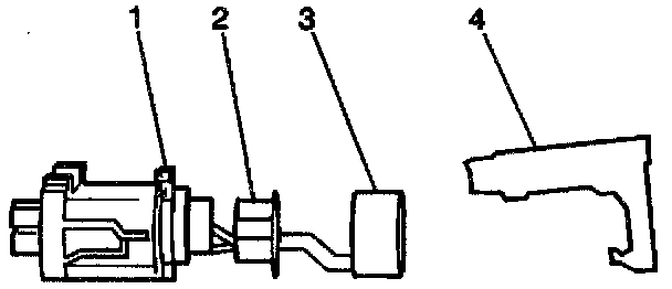1. Install the ignition cylinder cover (2) and light pipe (3) onto ignition cylinder and engage the retainers.