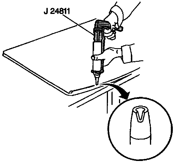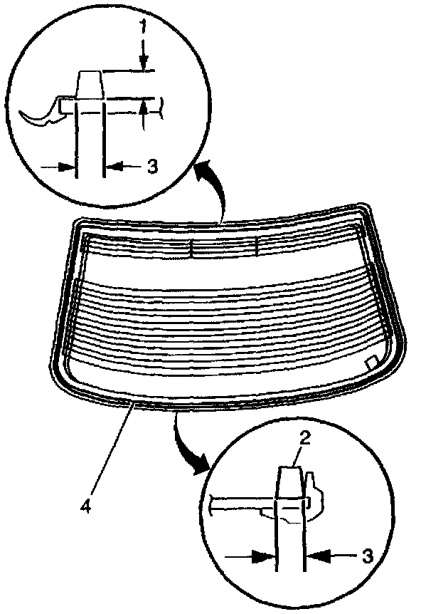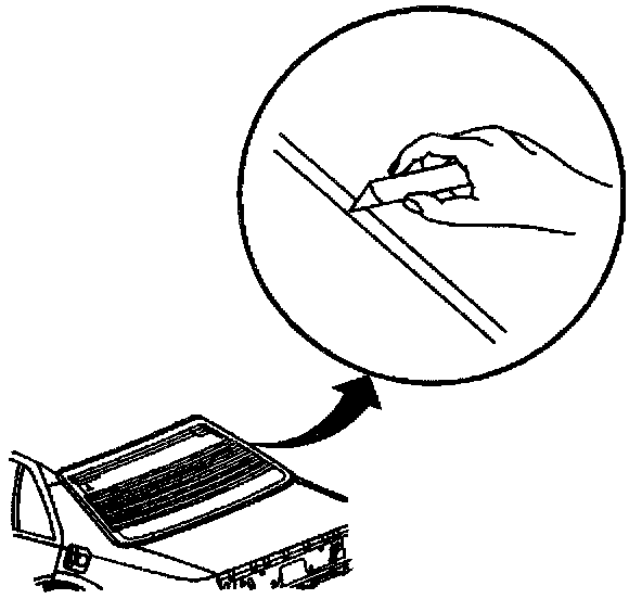 2. If the rear window can not be reused, cut the outer lip of the rear window reveal molding off with a urethane razor knife or equivalent to allow access to the body pinchweld.