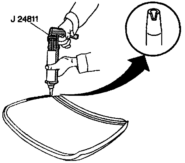 12. Install the windshield with the aid of a helper and the suction cups from the J 36863.