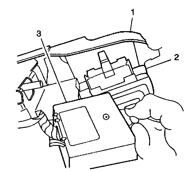 3. Move the bottom of the module (3) towards the brake pedal first and then slide down from the bracket (2).