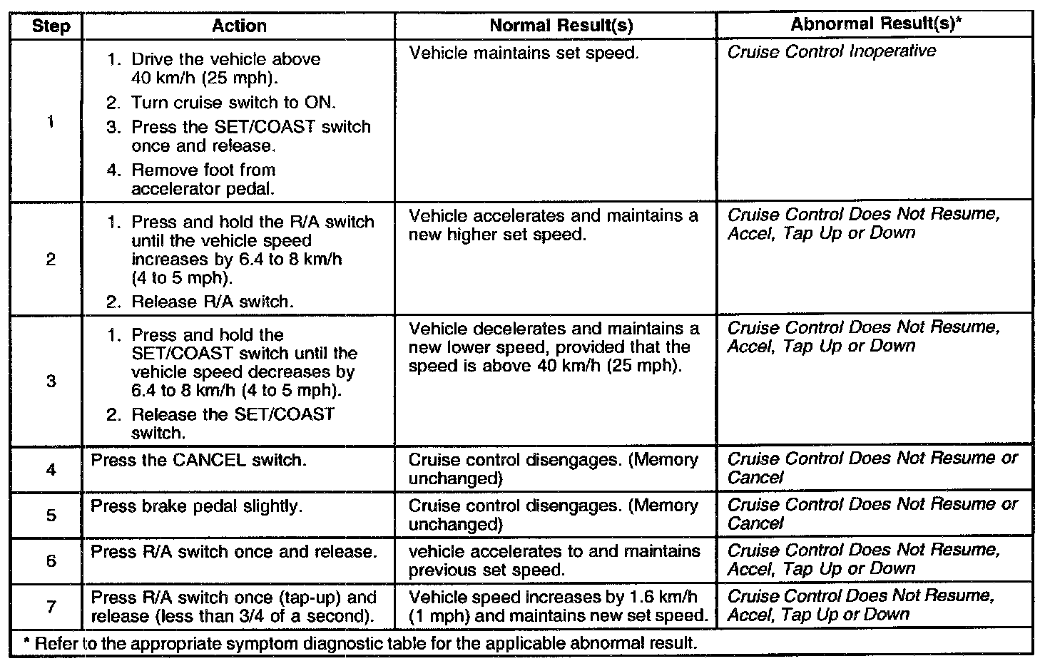 Cruise Control System System Check: