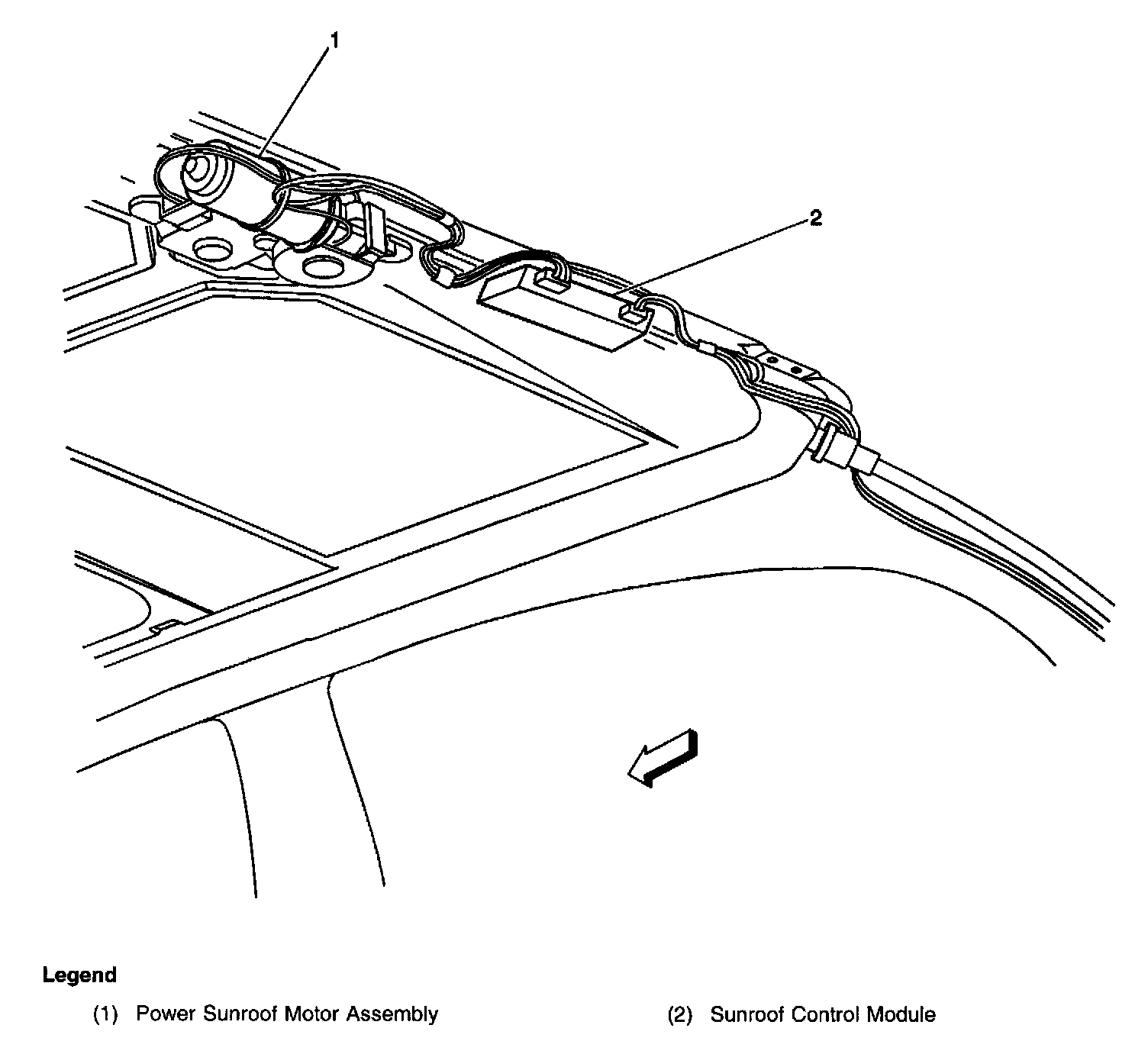 Rear of the passenger compartment, behind the headliner near the rear of the sunroof
