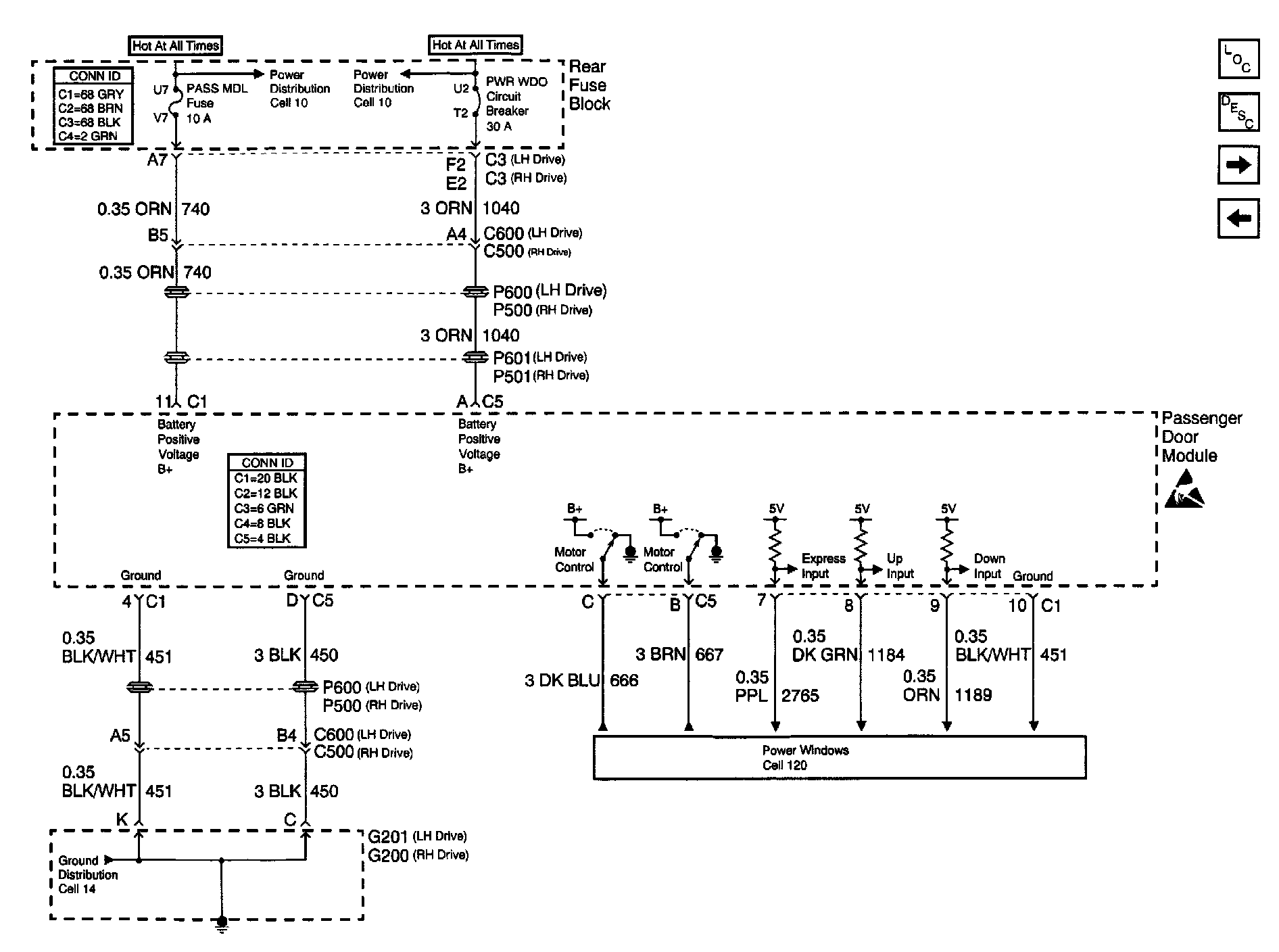 Door Control Module Schematics: Passenger Door Module Power, Ground, Inputs And Outputs: