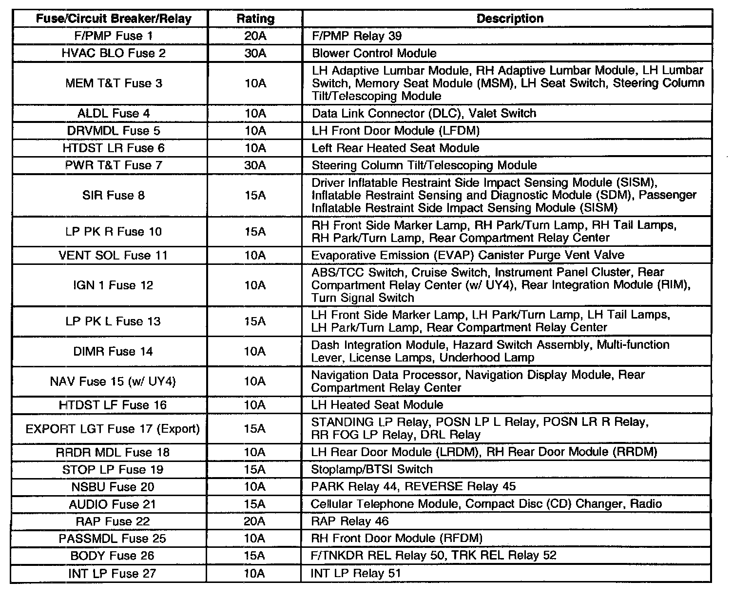Rear Fuse/Relay Block