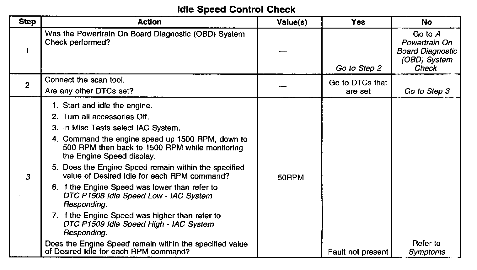 3. This check test the IAC valve to make sure that it is moving in and out without binding. When the IAC valve is commanded the PCM adjusts the IAC position and spark advance for a desired RPM.