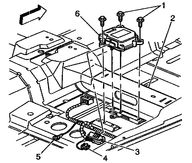 1. Install the SDM (6) to the floor sheetmetal (2).