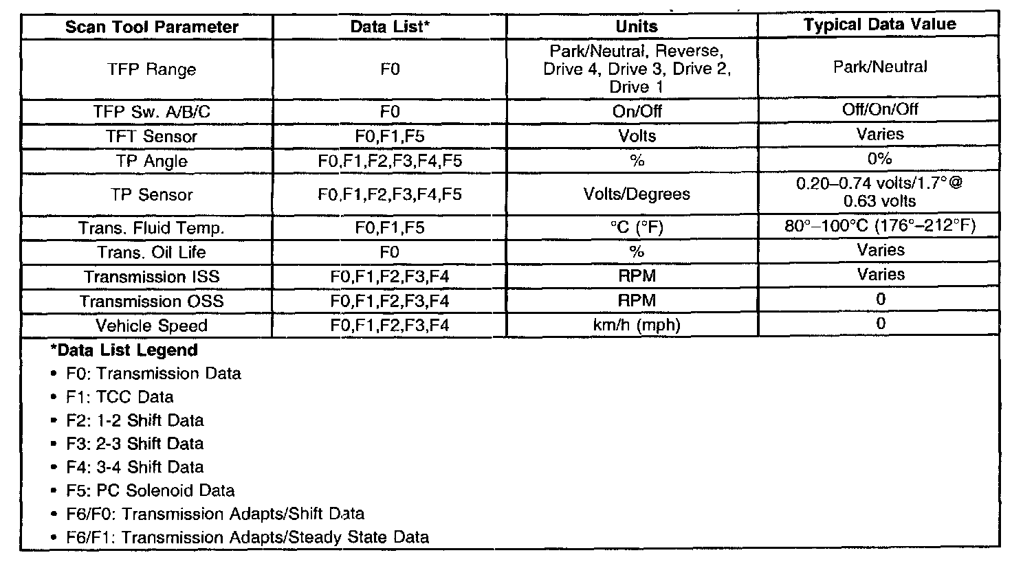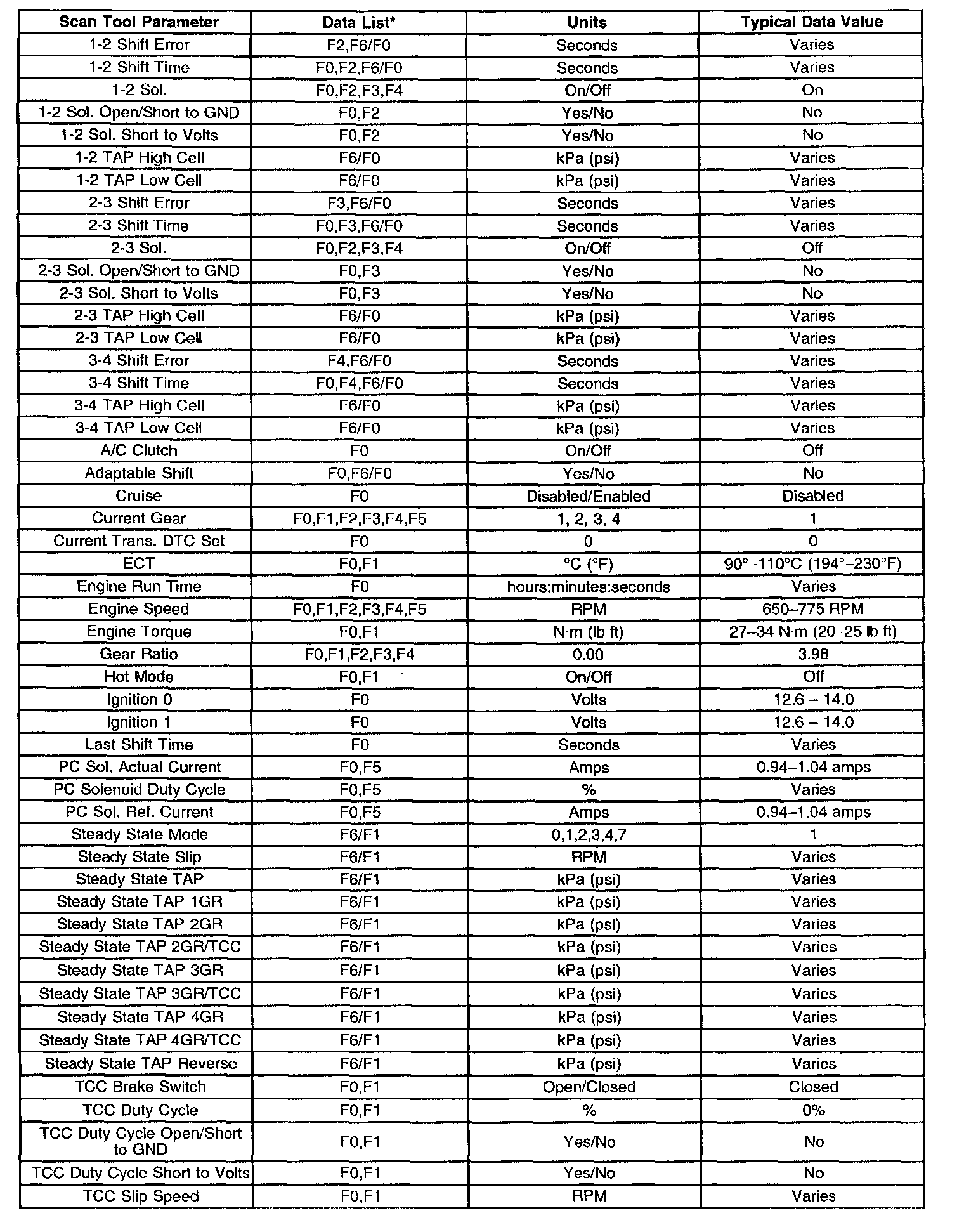 Only the parameters listed below are used for diagnosing. If a scan tool displays other parameters, the values are not recommended by General Motors for use in diagnosis.