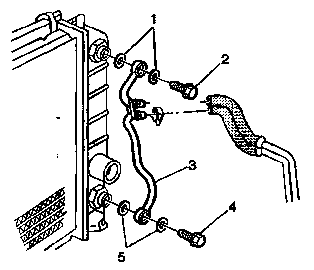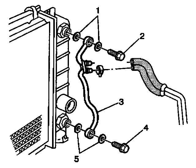 4. Remove the upper pipe fitting and seals from radiator. Discard seals.