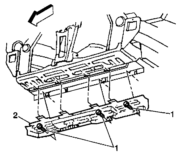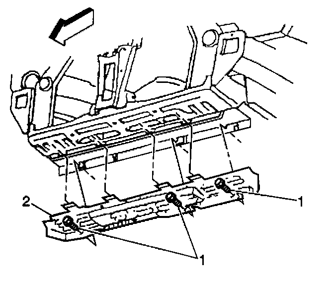 7. Remove the compressor splash shield (2) and the retainers (1).