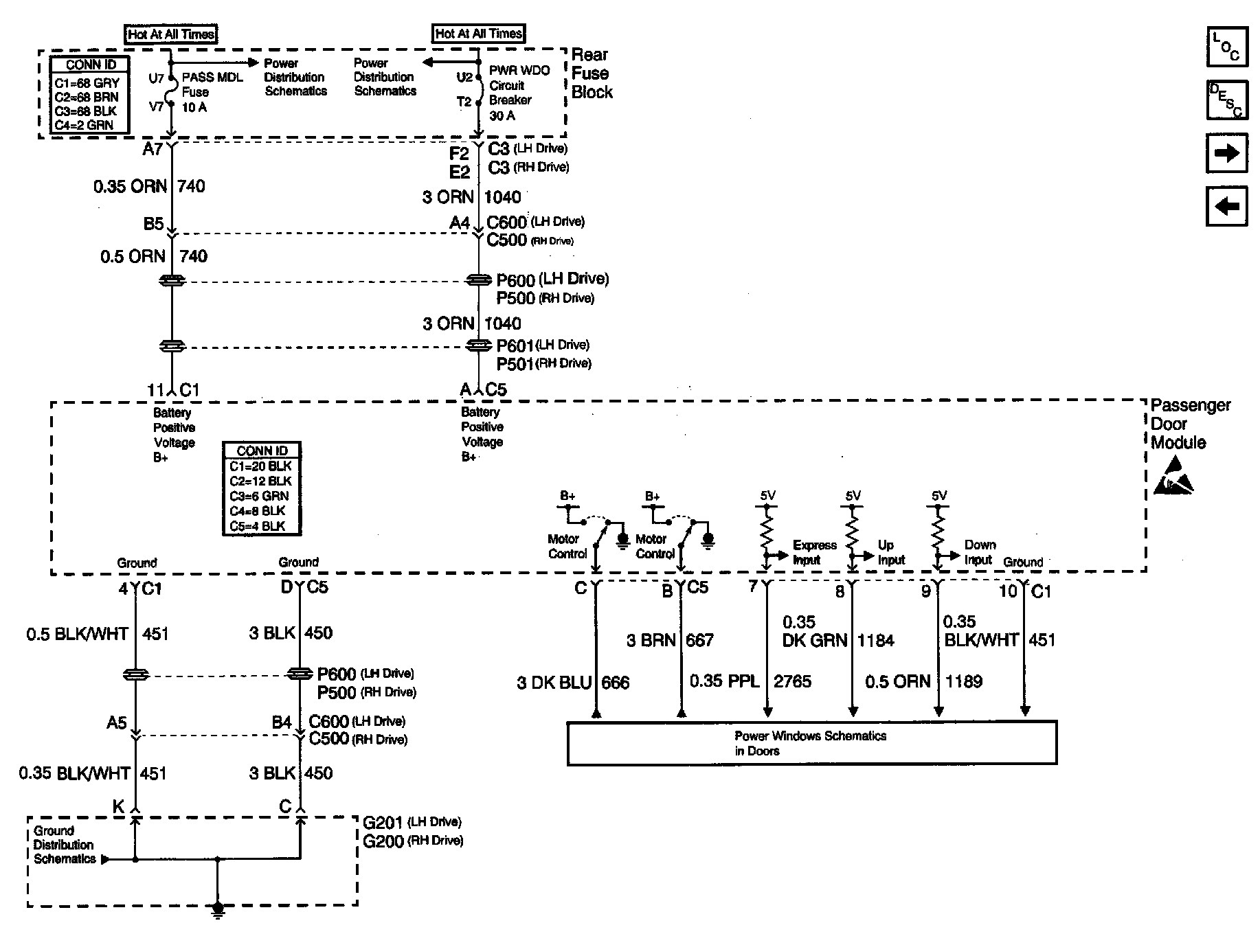 Door Control Module Schematics: PDM Power, Ground, Inputs, And Outputs: