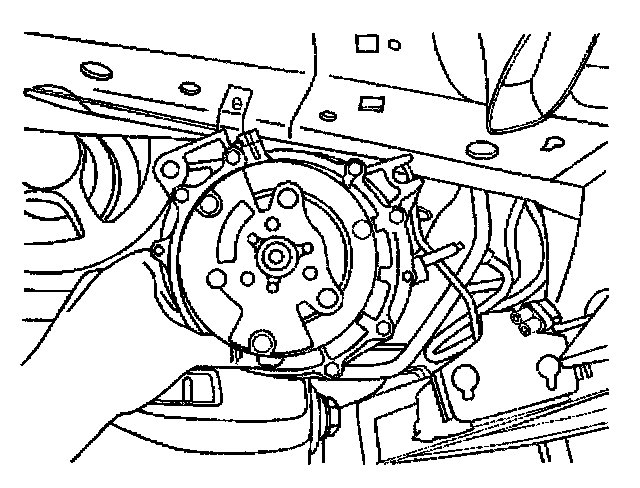 15. Rotate the A/C compressor, in order to allow the A/C compressor to exit through the wheelhouse extension opening.