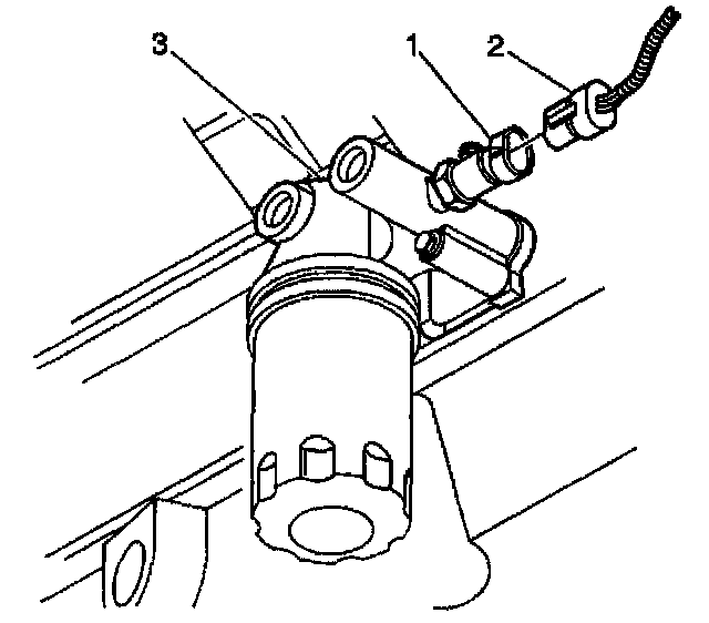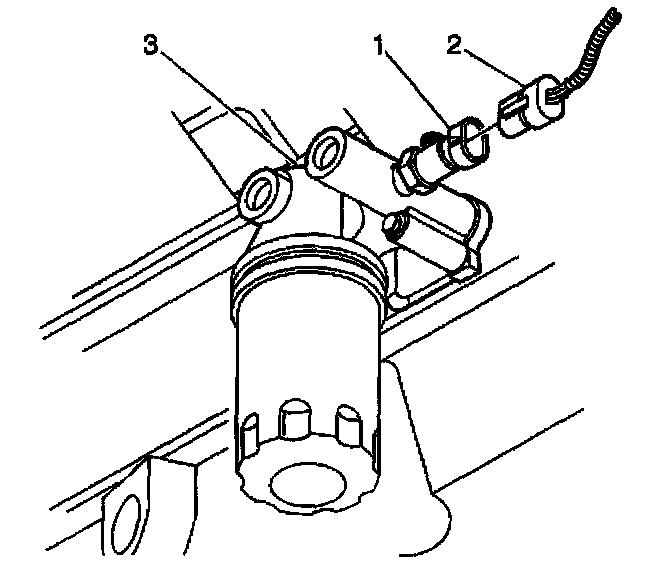 3. Remove the oil pressure Switch (1) from the oil filter adapter (3).