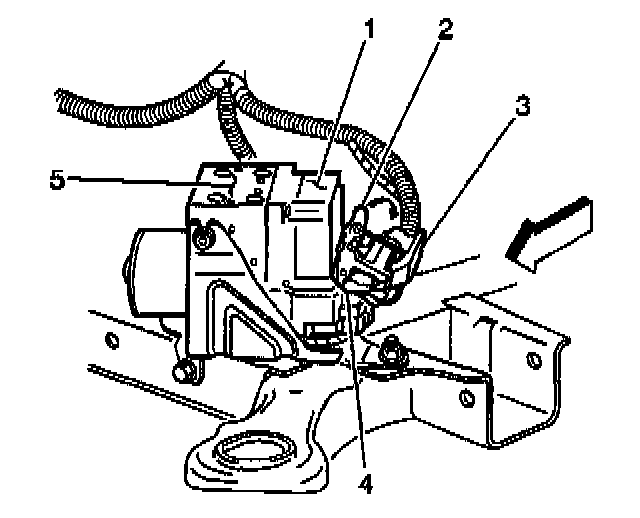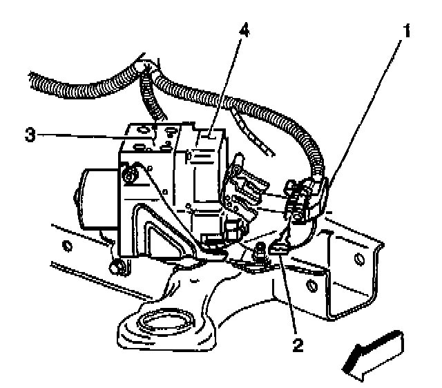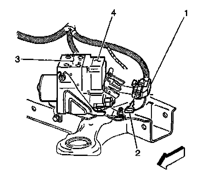 8. Remove the EBCM electrical connector (1) from the EBCM (4).