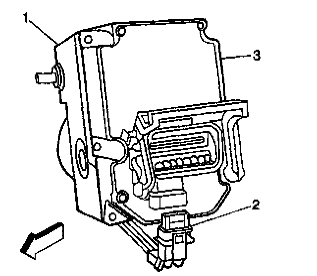 9. Remove the BPMV electrical connector (2) from the EBCM (3).