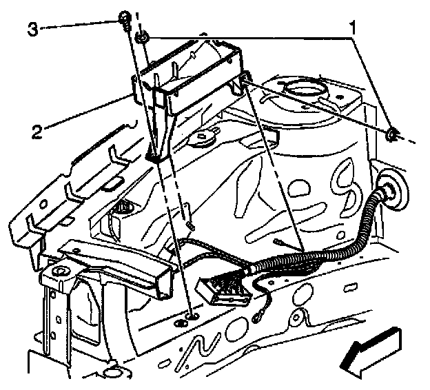 2. Install the fuse block base fasteners (1, 3).