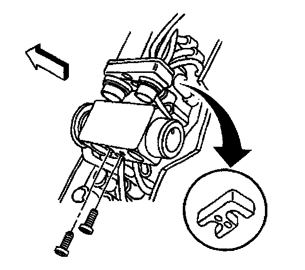 8. Position the heater water valve electric vacuum solenoid to the HVAC module.