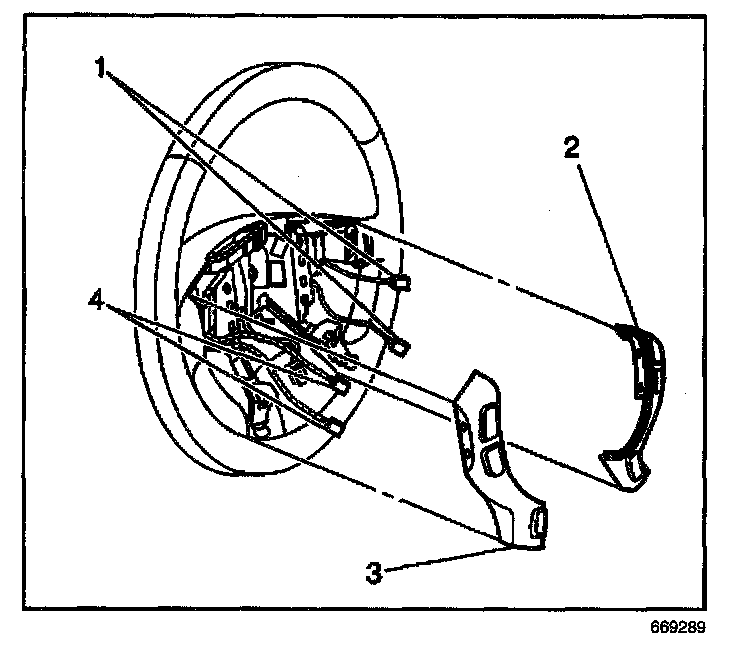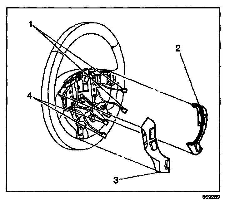 5. Remove the steering wheel control switch (2) from the steering wheel.