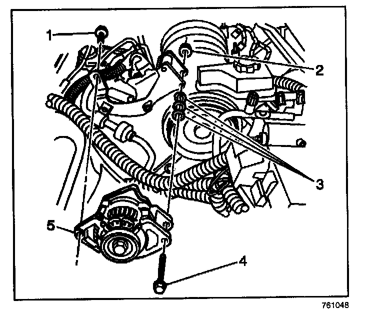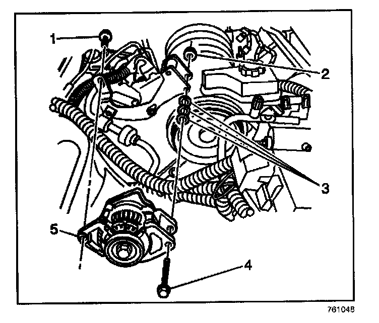 3. Install the generator mounting bolts (1, 4) and nut (2).